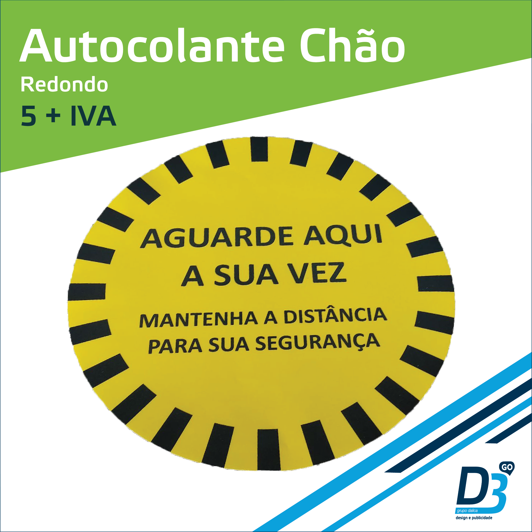 Autocolante chão Redondo 400X400 mm com laminação antiderrapante, própria para chão.