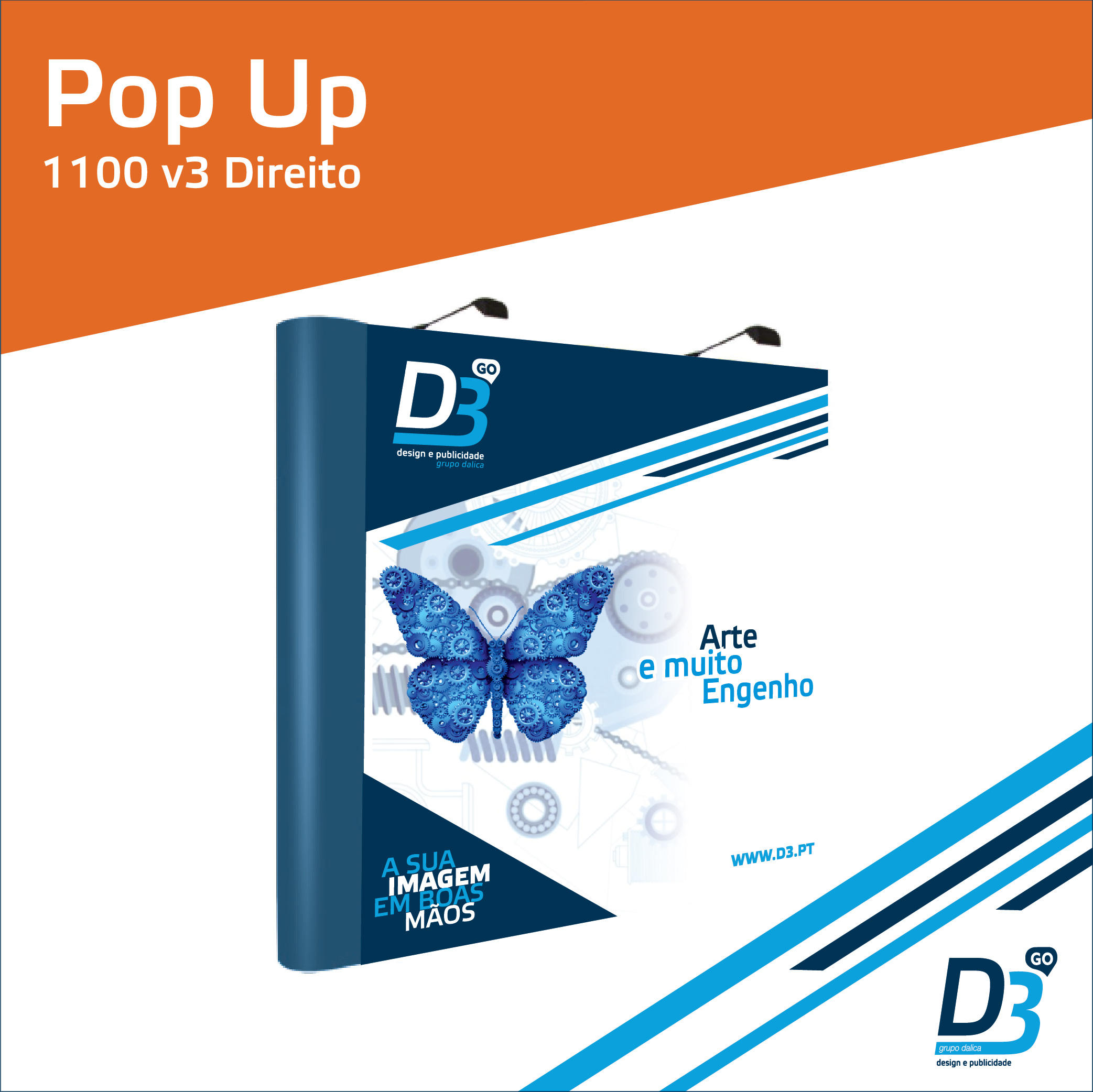 Estrutura «Pop-UP» plano direito, com fixação por mola. Com barras metálicas para apoio na fixação dos painéis de PVC. Fácil troca dos painéis. Permite também a colocação de focos de luz. Existe em 3 tamanhos. Ideal para eventos, de interior. Para mais informações, contactar comercial@d3.pt ou 934982324.